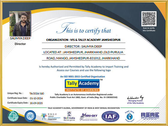 Established in 2005, Tally Academy, India’s one of the most Reputed & Renowned Skill and Talent Development Brand, Tally Academy is an Autonomous Institution Registered Under Public Charitable Trust Act 1882,Govt. of India ( Reg. No. IV-190302550) is also Society Registered (Reg. No. S/2L/47695) W. B. Act XXVI of 1961 .